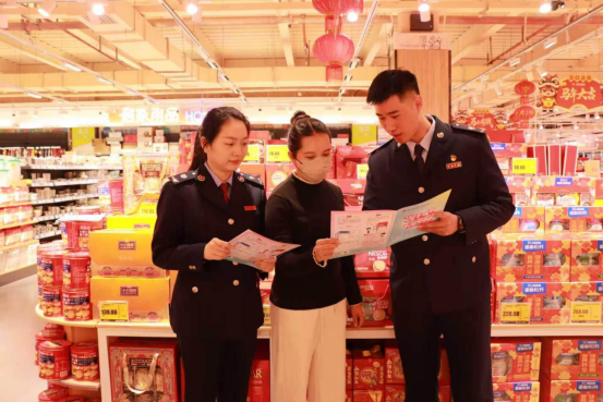 “本来只是正常购物开发票,现在还能参与抽奖,不仅感到自己的消费权益得到了保护,还多一份意外的欢喜。”正在超市选购商品的王女士,在税务人员手把手的指导下完成抽奖操作,眉眼间满是喜悦。税务工作一边发放税收政策宣传手册,一边细致耐心为每一位往来消费者讲解发票抽奖的参与条件、操作步骤和中奖查询方法,耐心引导市民群众消费后主动索要发票。