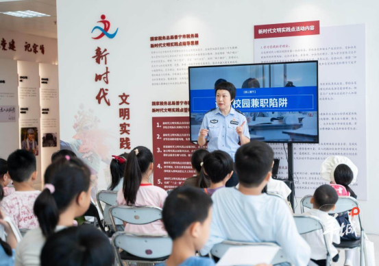 随后,普宁市公安局、普宁市司法局的业务骨干们也纷纷化身“法治导师”,将反电信网络诈骗法、民法典等法律条文融入日常生活以及校园生活场景,用贴近小朋友日常的鲜活案例,剖析电信网络诈骗、未成年人网络充值及打赏等热点问题的法律后果,引导小朋友们明辨是非、知法守法。