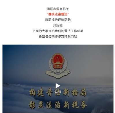 下一阶段,我局将继续深入贯彻落实党的十九大关于“坚持全面依法治国”“加大全民普法力度,建设社会主义法治文化”的部署要求,强化内外部门协作力度,创新普法方式方法,持续推动普法实践,擦亮普法宣传品牌,为法治揭阳的建设贡献揭阳税务力量。