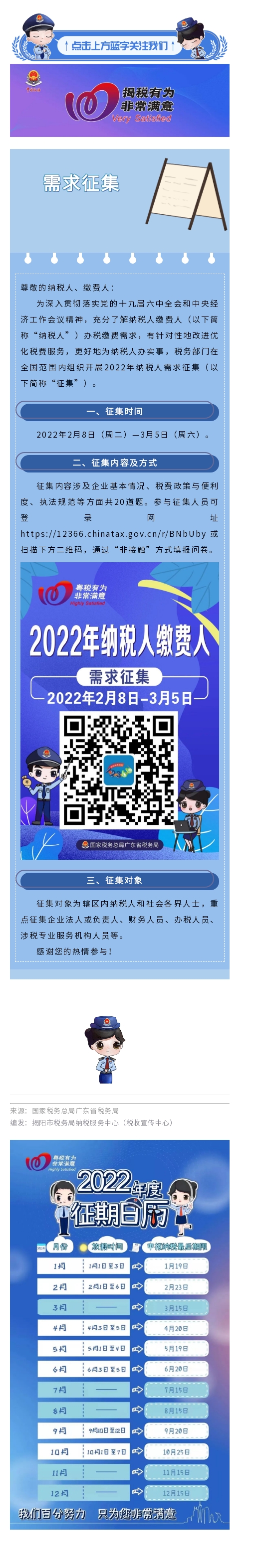 @所有人:2022年纳税人缴费人需求征集,期待您的参与!