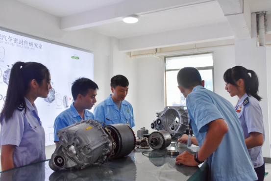 在广东天诚密封件股份有限公司的新能源汽车密封件研究室里,研发人员正在研究拆解下来的汽车零部件,以便明确下一步的产品研发方向和改进思路,研发出更符合合作伙伴期望的密封件产品。作为长安汽车、比亚迪等二十余家汽车企业一、二级配套供应商,天诚一直坚持走产学研道路,钻研油封低摩擦涂层技术,在第二代低摩擦油封、气门油封高效率注射成型技术等方面取得了突破,并加快了科技创新、转型升级的步伐,将发展目标投向了海外市场。