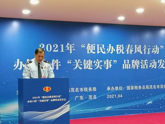 4月9日,国家税务总局茂名市税务局举办2021年“便民办税春风行动”办好10件“关键实事”品牌活动发布会。