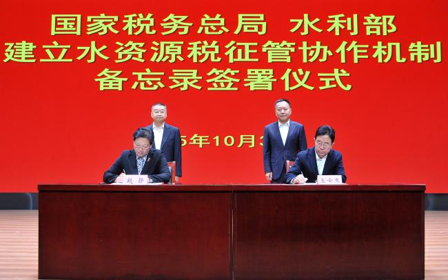 国家税务总局与水利部签署建立水资源税征管协作机制备忘录