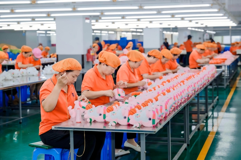 东莞康达玩具礼品有限公司生产线,工人正在赶制十五运会订单