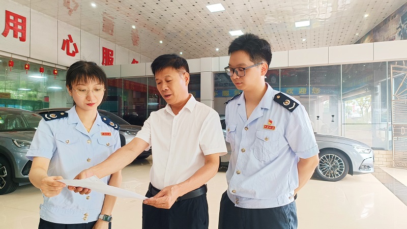 “现在消费者购买符合条件的新能源汽车能享受到车辆购置税和车船税的减免,十分划算。”为支持新能源汽车产业发展,促进汽车消费,平远县税务局走进平远显裕汽车贸易有限公司(以下简称“显裕汽贸公司”)开展车购税减免政策宣传。