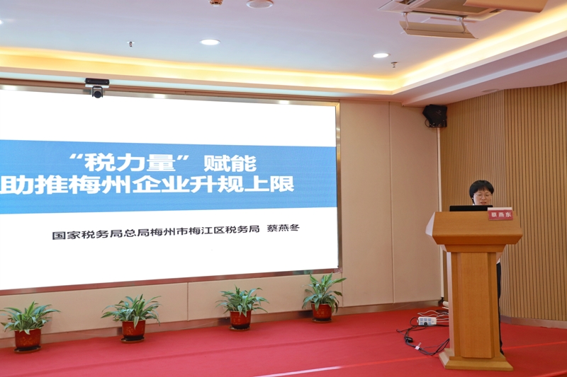 梅江税务部门在2025年助推培育“四上”企业专题宣讲培训会上作了题为“‘税力量’赋能助推梅州企业升规上限”的政策宣讲。