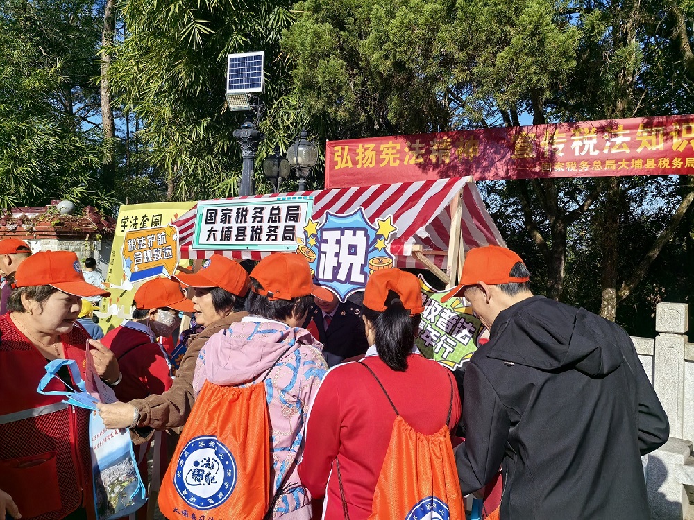 近日,大埔县湖寮镇的虎山公园内暖阳高照、人头攒动。大埔县税务局联合县普法办、司法局、法院、检察院等多个部门,共同启动2025年“宪法宣传周”暨“宪动律行季”法治徒步活动。近300名徒步爱好者齐聚于此,在健身活动中学习法律知识,收获满满“法治干货”。