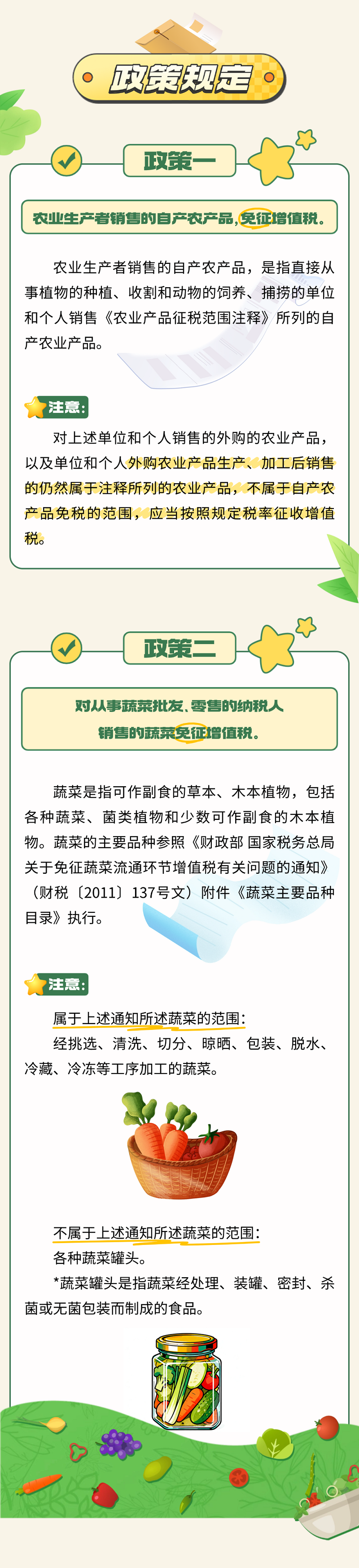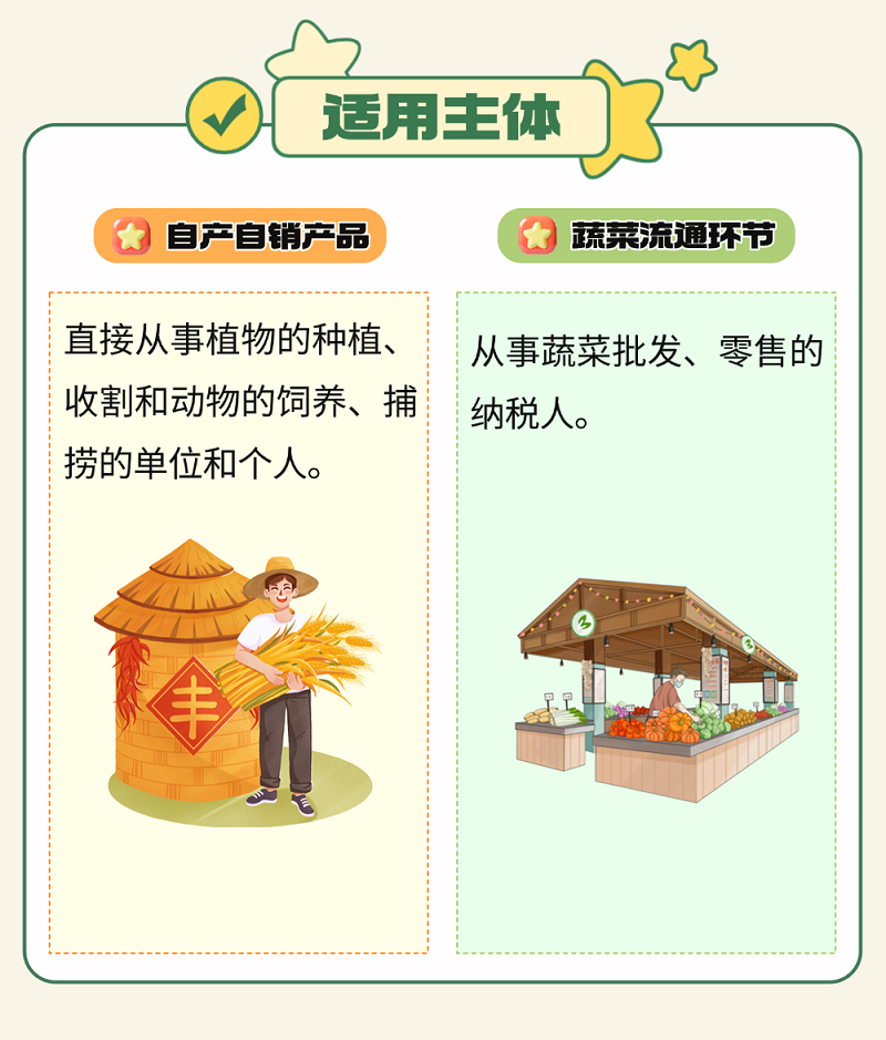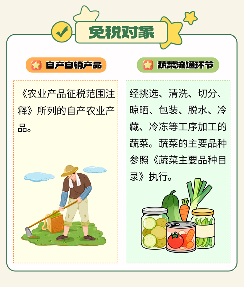 一文了解:自产自销农产品与蔬菜流通环节,免征增值税政策对比