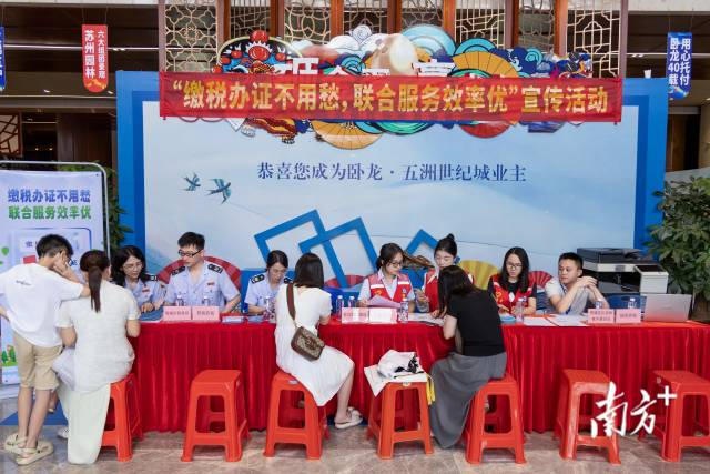 为进一步优化办事体验,切实解决群众“缴税办证”的难点、痛点问题,近日,清远市自然资源局、清城区税务局、清城区住房和城乡建设局联合组建服务队,走进卧龙五洲和雅居乐等住宅小区,开展以“缴税办证不用愁,联合服务效率优”为主题的宣传活动,将“缴契税、即办证、抽大奖”的“一站式”服务送到群众家门口,推动“高效办成一件事”落地见效。