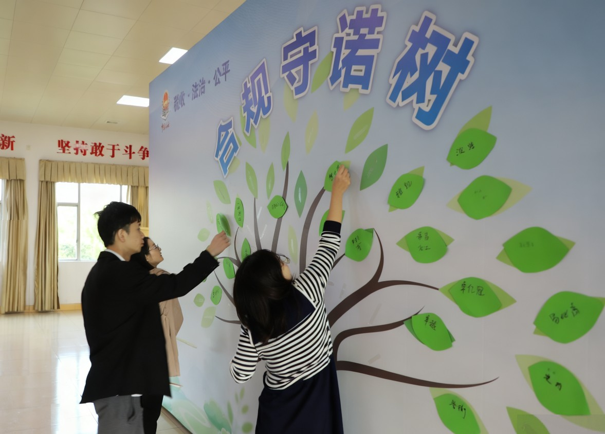 为强化企业“合规经营、诚信纳税”的意识,本次宣讲会特别设计了“合规守诺树”签到环节,每片“绿叶”都代表企业对合规经营的承诺。随着代表们陆续签到,空白的“树枝”很快缀满了写有企业名称的“绿叶”。“以往签到只是签个名字,这次在‘合规守诺树’上贴上公司名字,感觉是把‘合规守诺’4个字郑重刻在了心里。”清远慧谷新材料技术有限公司财务人员陈女士介绍,公司通过完善税务内控体系、规范发票管理与纳税申报流程,并组织财务人员参加税务培训,将合规理念落实到具体经营管理中。