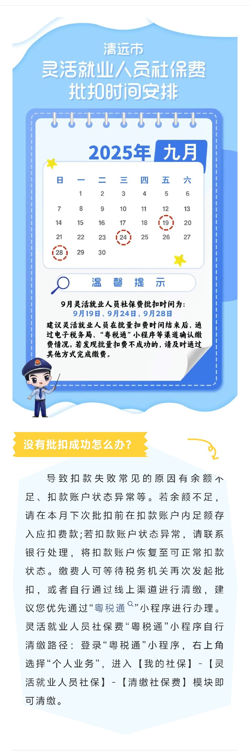 2025年9月清远市灵活就业人员社保费批扣时间安排