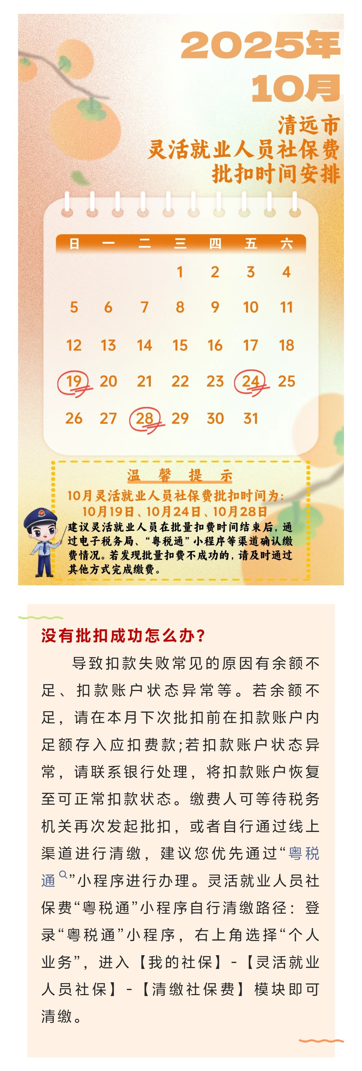 2025年10月清远市灵活就业人员社保费批扣时间安排