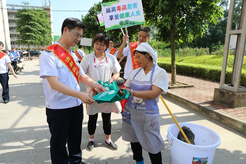 宣传队伍陆续经过了龙湾工业投资有限公司、广东中骏森驰汽车零部件有限公司等公司,向企业工作人员派发禁毒宣传资料、环保袋,面对面与工作人员们交流毒品危害知识。在税务人员宣传呼吁下,数十名企业代表在印有“禁毒宣传齐步行无毒承诺牢记心”活动主旗上签名,许下无毒承诺,表明了禁毒的决心。