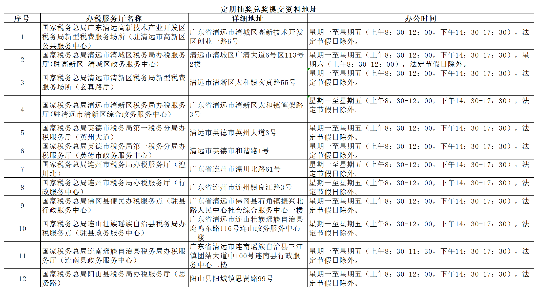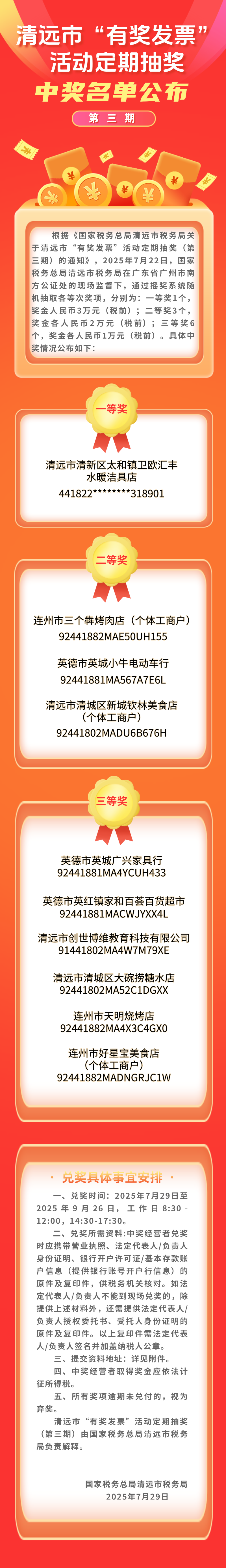 清远市“有奖发票”活动定期抽奖(第三期)中奖名单公布