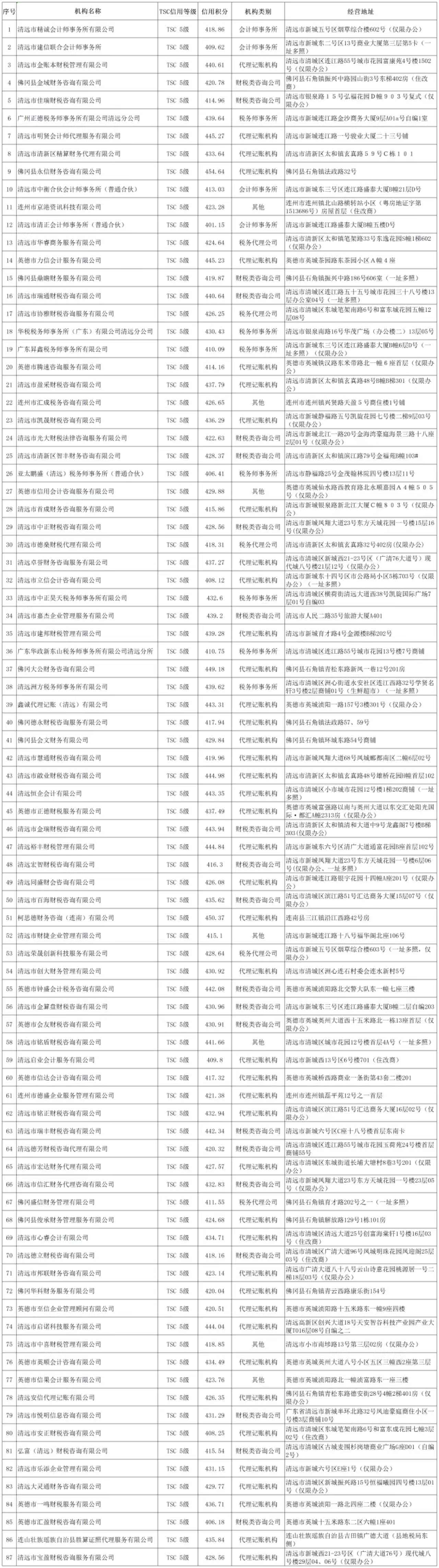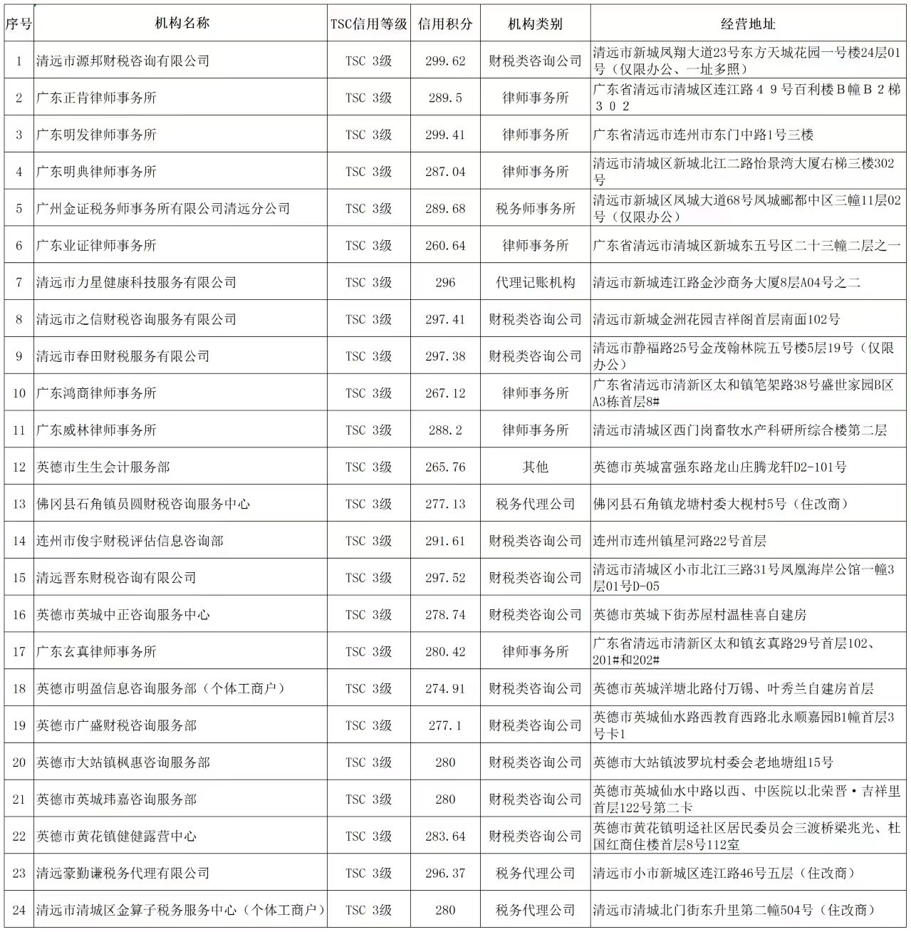 为加强涉税专业服务信用评价管理工作,促进涉税专业服务行业健康发展,根据《涉税专业服务管理办法(试行)》(国家税务总局令第58号)规定,现将清远市2025年9月涉税专业服务机构信用等级和信用积分情况予以发布。
