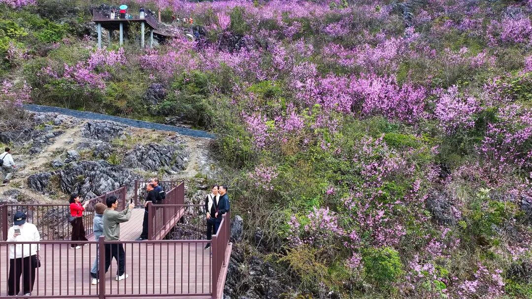 活动当日,西京古道下庄村段紫荆花海也同时迎来大批游客,粉紫花枝与千年古道相映成趣,成为徒步打卡热门地。“我们吃了斋饭,很好吃很开胃,看了非遗的游街,现在又来看这个花海,很好看。晚上我们想一家人来泡温泉。”专程前来的市民对此次行程赞不绝口。