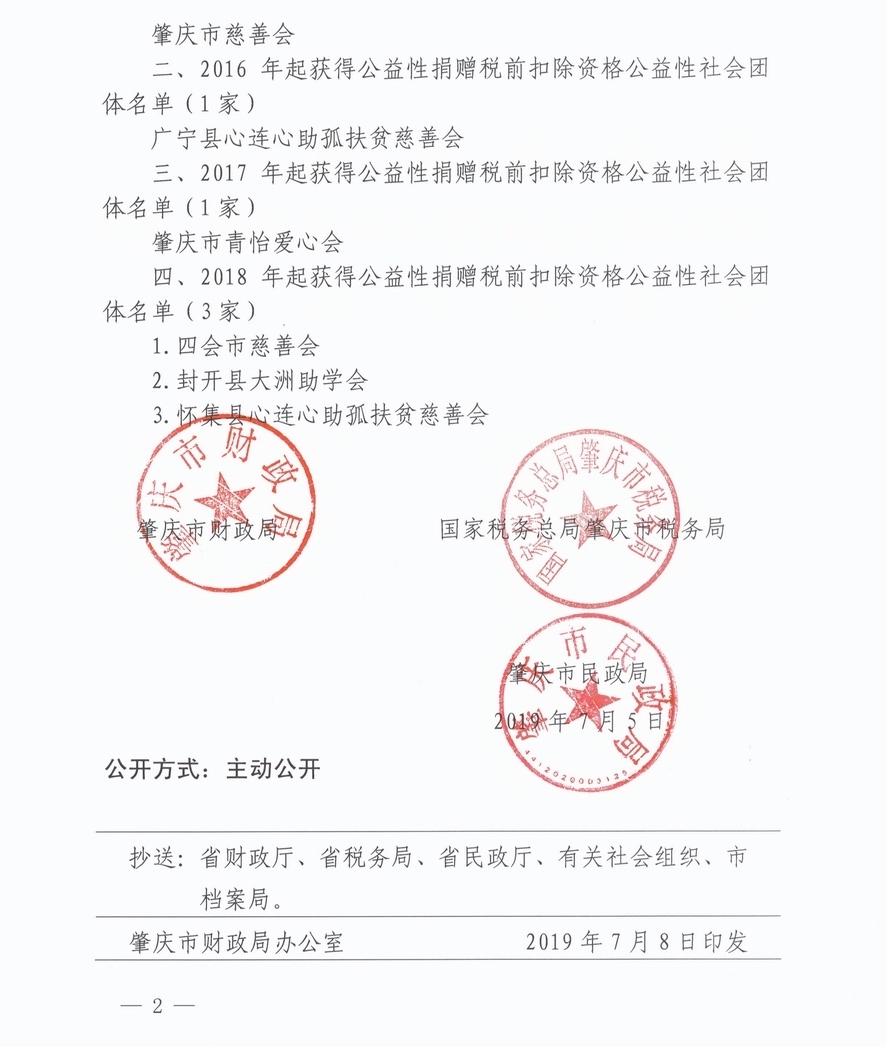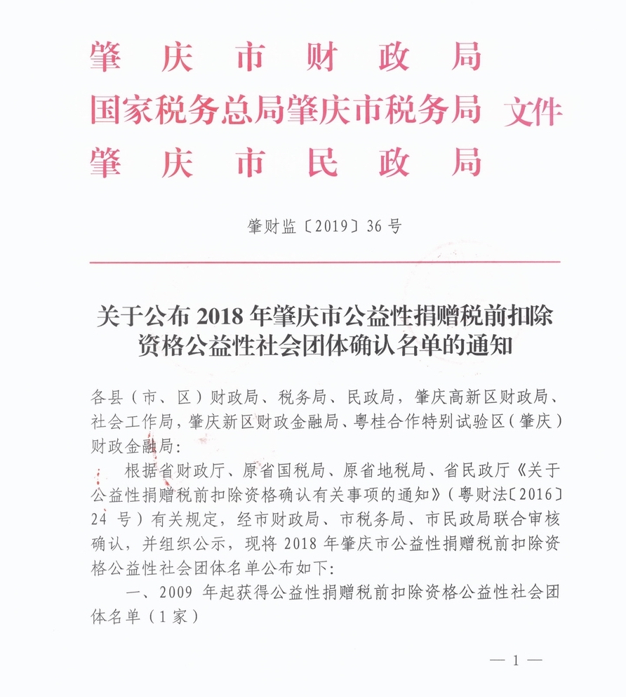 关于公布2018年肇庆市公益性捐赠税前扣除资格公益性社会团体确认名单的通知