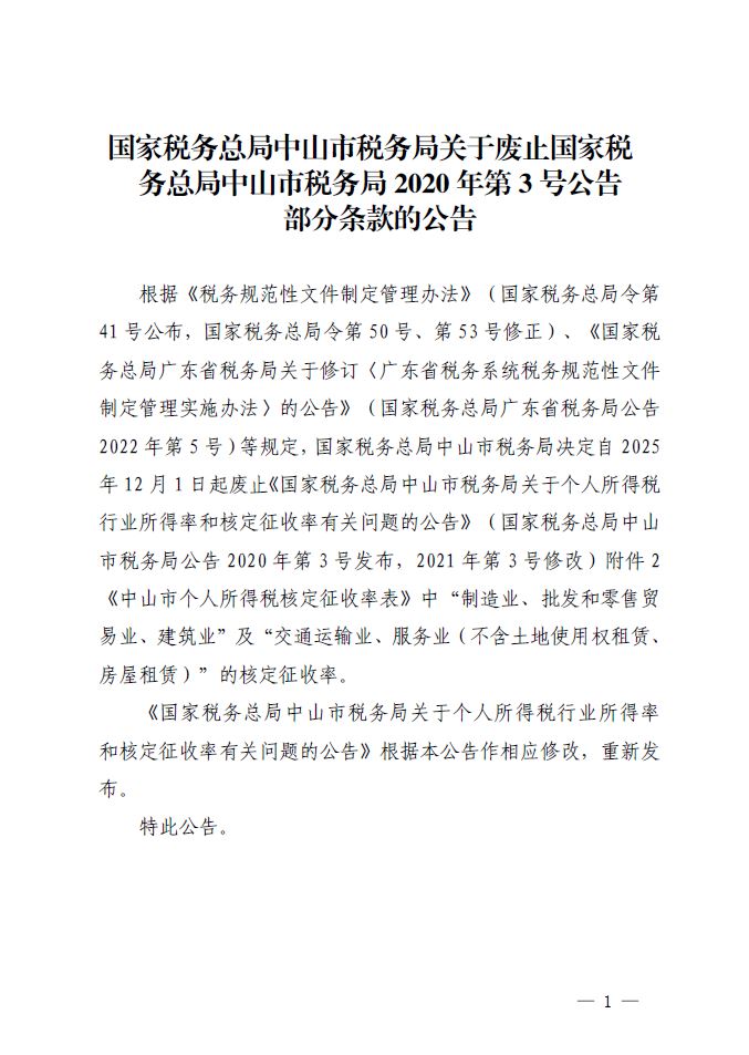 关于《国家税务总局中山市税务局关于废止国家税务总局中山市税务局2020年第3号公告部分条款的公告》的解读