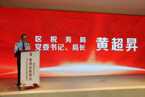 评议会上,区税务局党委书记、局长黄超昇现场作“谁执法谁普法”履职报告,并播放了区税务局制作的汇报短片。他介绍,在落实“谁执法谁普法”责任制过程中,金平区税务局以习近平新时代中国特色社会主义思想为指导,深入学习贯彻党的十九大关于普法工作的重要精神,结合我区税收普法工作实际,创新形式,注重实效,建立普法领导机制、学法长效机制、用法常态机制、考核督导机制“四个机制”;强化数字法治建设、法制制度建设、法治文化建设、法治人才建设“四个建设”;构筑多元化全覆盖普法格局、大宣传全覆盖普法格局、梯队式校园全覆盖普法格局、户外主题式全覆盖普法格局“四个格局”,持续提升税法社会遵从度。