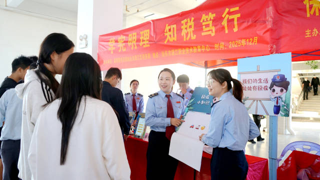 近日,以“学宪明理 知税笃行”为主题的宪法宣传活动在汕头市濠江职业技术教育中心举办,现场暖意融融,气氛热烈。税务干部用青少年的语言讲述宪法和税法如何守护每个人的生活,帮助他们系好第一粒“法治扣子”。