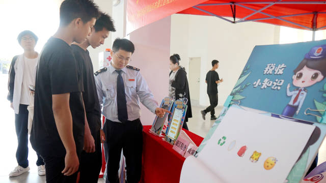 “我将来选择灵活就业的话,社保费怎么缴纳更方便?”“我们的实习收入需要缴税吗?”“我刚出差回来,如何用手机开具铁路电子客票?”……面对学校教职工和学生们提出的一个个具体问题,普法志愿者们耐心倾听,将最新的税费政策用简单易懂的“大白话”进行回答,并就城乡居民基本医疗保险缴纳、电子发票开具使用等操作性强、关注度高的“身边事”进行流程演示与分步教学,有效提高青少年及教师群体对宪法、税法的知晓度和遵从度。