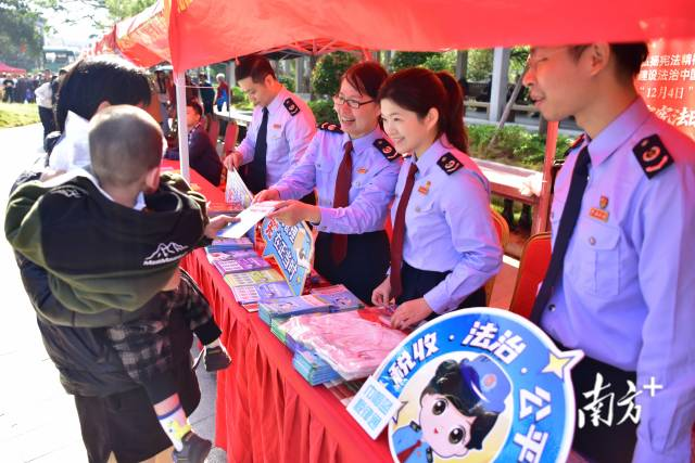 本次活动以“宪法护航税收 学法守护权益”为主题,澄海税务在现场设置了宣传咨询专区,通过有奖问答、发放政策辅导资料、面对面答疑解惑等多种方式,向过往群众普及宪法和税收相关政策知识,并结合近期社会热点问题,在宣传宪法基本原则的同时,重点解读了社会保险费征缴和新办企业涉税费注意事项。
