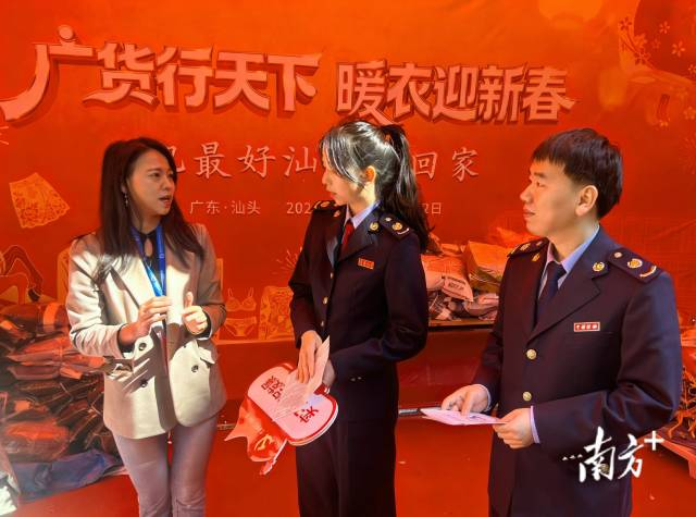 近期,在汕头国际纺织城,“广货行天下·暖衣迎新春”年货促消费活动持续火热。在年味十足的新春购物活动现场,潮阳区税务局宣传普法团队面对面了解商户经营情况与问题诉求,主动解读相关适用税费政策,耐心辅导商户合规经营、防范风险。