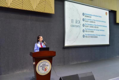 活动中,“税务双语讲师团”以中、英双语开课,对居民身份认定、无住所个人纳税义务、无住所个人取得收入税款计算、外籍人员个人所得税优惠等内容进行详细解读,帮助外籍教师了解外籍人员个人所得税相关政策规定,并专业解答个人所得税年度汇算办理等操作问题。
