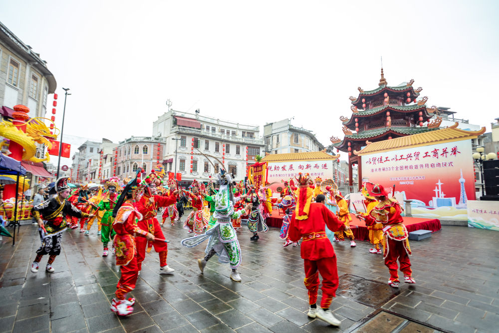 气势磅礴的英歌舞拉开汕头市第33个全国税收宣传月活动序幕。