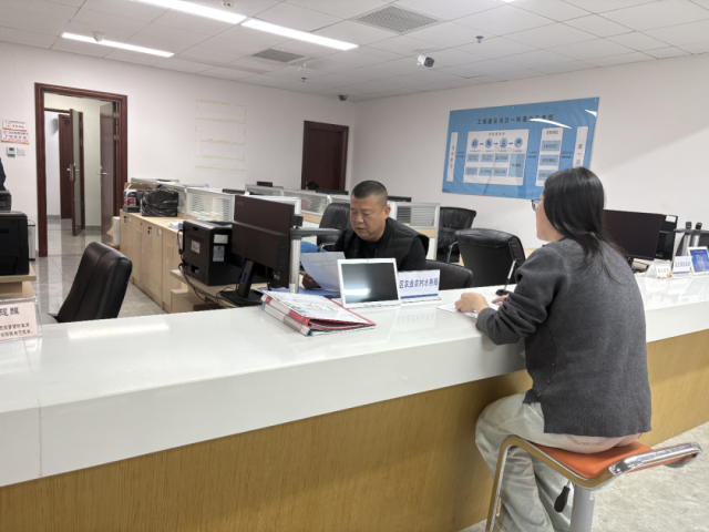 12月23日,区城管局局长王宜宜按窗口工作人员服务流程为企业核发挖掘城市道路许可证,与办事企业进行沟通交流,现场出具申请许可证。