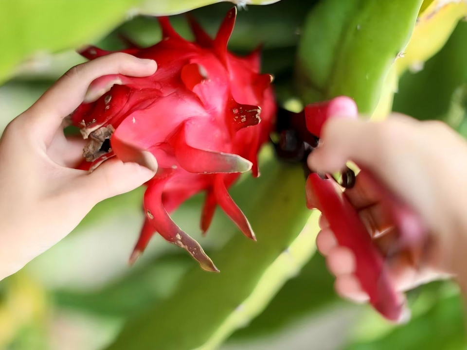 创业初期的困难远超预期。作为门外汉,她白天跟着种植专家蹲在田间地头学嫁接,晚上自学电商运营知识;台风来临前,她带着工人连夜抢收果实。最难的是市场开拓阶段,首批成熟的火龙果面临滞销,她骑着三轮车独自跑市场,从水果店到百货超市到KTV,挨家挨户去推广自家的水果。从无人问津到供不应求,从农业小白到经验老手,练永兰就这样一步一个脚印坚持了下来。