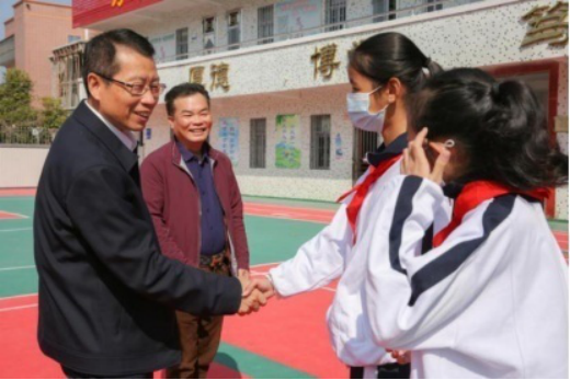 汕尾市税务局党委书记、局长龙成东与溪口小学学生亲切交谈