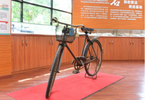 在茂名市税收普法教育基地的展览区中,摆放着一辆刻上了岁月痕迹的凤凰牌单车,上面悬挂着“当年征税交通工具”的蓝色标签,车把、齿轮和铁皮上爬满的斑斑锈迹,承载着不少老税干酸甜苦辣的税月回忆。税务部门身处承担国家税款征收工作的第一线,因应时代的号召和改革浪潮不断发展前进。一辆旧单车,似乎在默默诉说着税收改革事业的光荣岁月……