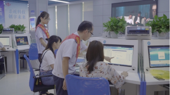 税务人员辅导纳税人登陆广东省电子税务局办理涉税业务