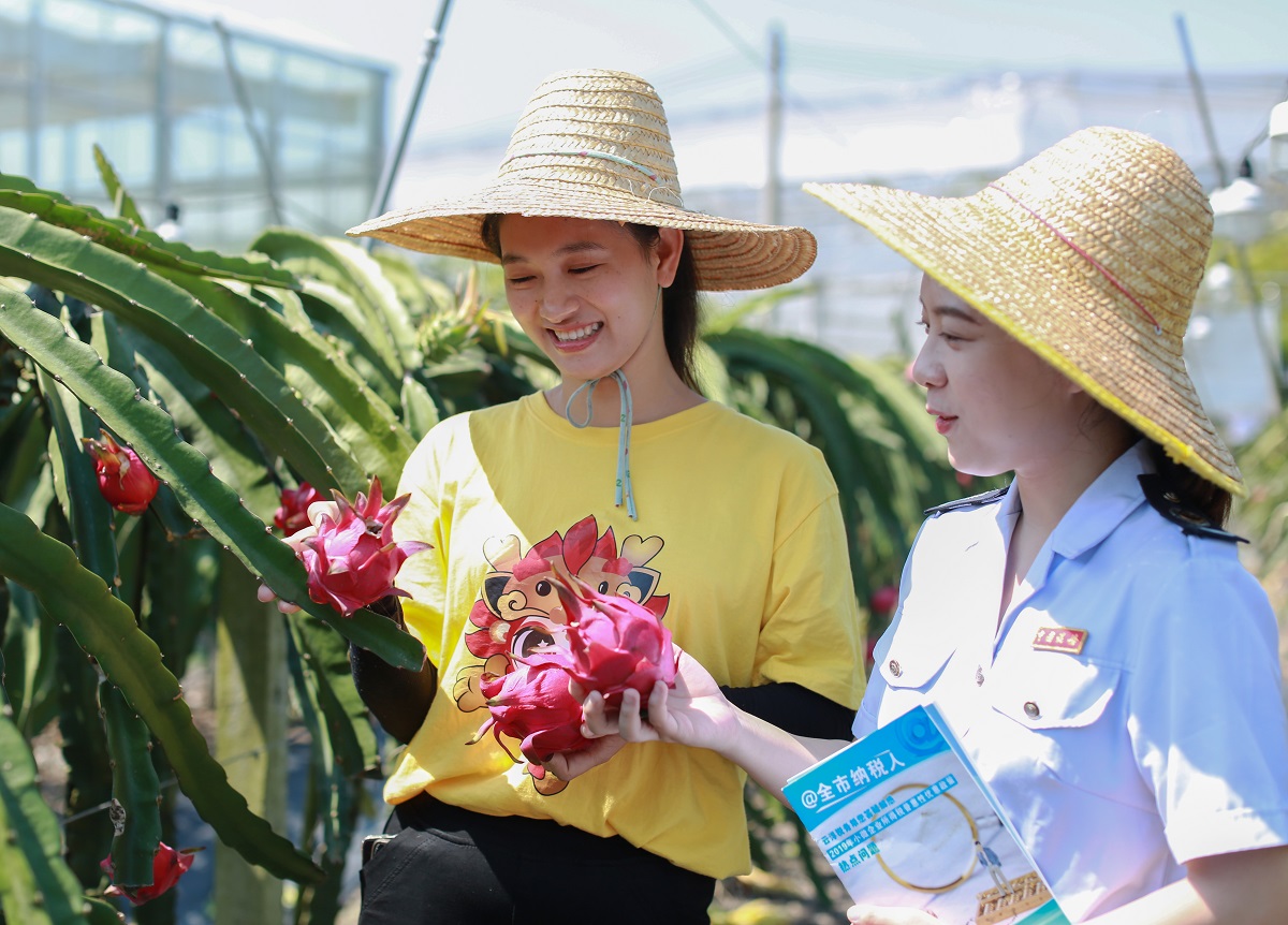 国家税务总局云浮市税务局成立减税降费政策宣传小组,向果农宣传减税降费政策,派发宣传手册。
