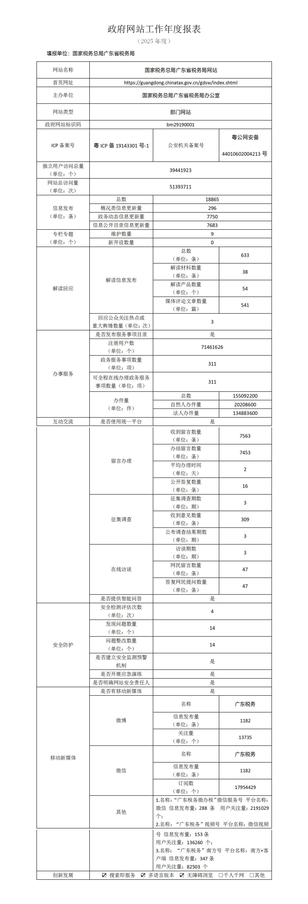 2025年度国家税务总局广东省税务局政府网站工作年度报表