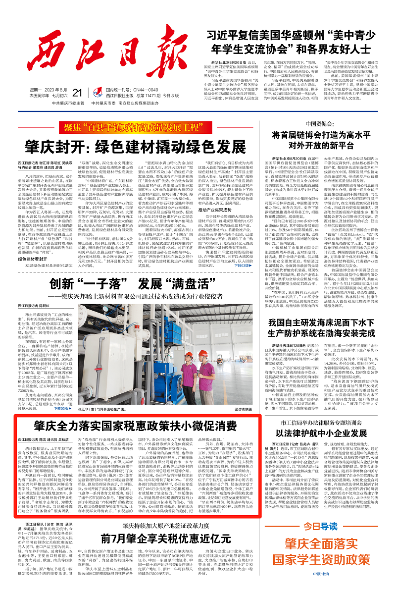 时下正值暑假,各类体育运动也跟着“热”了起来。在肇庆高新区将军山体育公园开展的体育嘉年华,丰富多彩的运动项目吸引了众多市民参与。爱奇(肇庆)文化体育运营管理有限公司是公园运营管理单位,副总经理吴涛表示,自6月以来,公司开展了涉及篮球、羽毛球、飞盘等一系列体育文娱活动,吸引了逾千名市民群众参与。“我们享受到了小微企业‘六税两费’的税收优惠,得以免费提供多项体育活动,让利市民群众尽情欢乐。”在税惠的加持下,该公司还引入了车尾箱集市、户外露营等新兴文化体育娱乐项目,打造良好的体育交流平台。