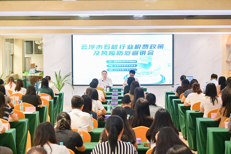 为进一步优化税收营商环境,助力擦亮云浮石材特色名片,5月9日,国家税务总局云浮市税务局联合云浮市石材行业协会举办2024年云浮市石材行业税费政策及风险防范宣讲会,详细解读《服务石材行业高质量发展税费政策指引》,推动税费政策的精准推送和税务风险的及时防范。
