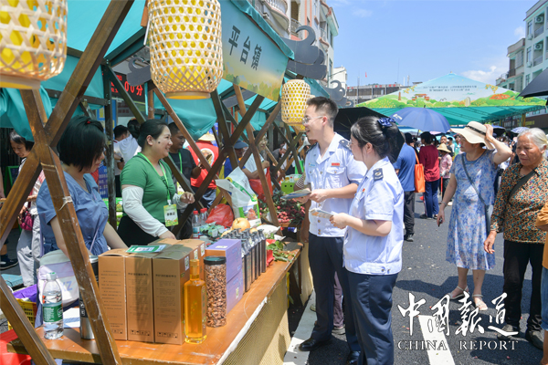 “黄皮饼香甜可口,还带着独特的咸香风味,黄皮果汁也特别好喝。”“这个果脯咸甜适中,风味独特。”“黄皮汁清爽健康,我们很喜欢。”现场游客对黄皮产品赞不绝口。