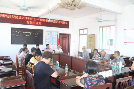 在旧寨村,阳西县税务局主要负责人一行与困难党员亲切地拉家长,话里短,详细了解他们的生活情况和身体状况,详细介绍税务系统近年来改革发展取得的成绩,向他们宣讲解读党的十九大精神,使习近平新时代中国特色社会主义思想深入他们心中,让老党员和困难党员切身感受到党组织的热切关怀和温暖。