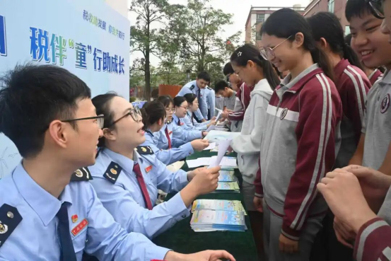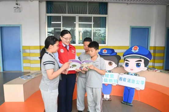在活动最后,税务青年志愿者们向学校赠送《税法教育读本》和税收宣传小册子,方便学生们活动后进一步学习和了解税法知识,寄语孩子们在阅读中开拓视野,了解税收来源和使用等知识,并把税收知识带给家人、播向社会,力促税收普法宣传从学校拓展到家庭、延伸到社会,让良好的法治风尚化风成俗、蔚然成风。