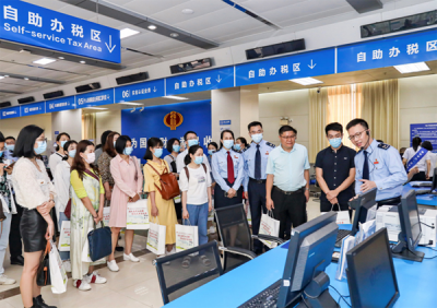图为 受邀人大代表、政协委员和纳税人代表参观办税服务厅
