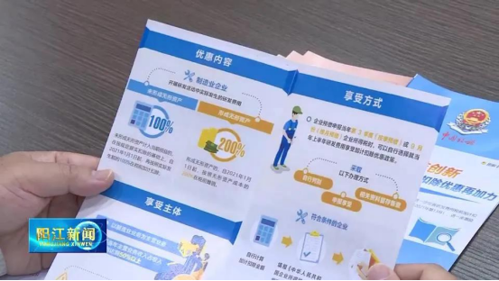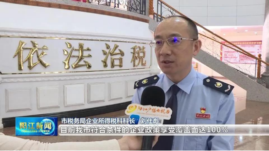 市税务局企业所得税科科长 刘仕彪:"通过精准宣传和精细辅导,目前我市符合条件的企业政策享受覆盖面达100%。经我们测算,预计2021年阳江全市企业研发费用加计扣除金额将会超过10亿元,有利于加快产业结构调整,持续激发市场主体活力,助力经济高质量发展。"