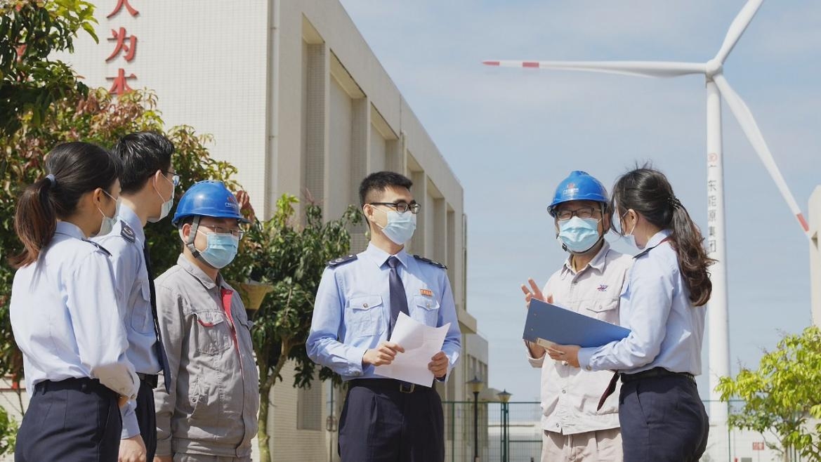 (图:茂名税务人员实地走访清洁能源企业,了解产品生产经营情况,并为企业送上适用的税收政策。潘柳彤摄)