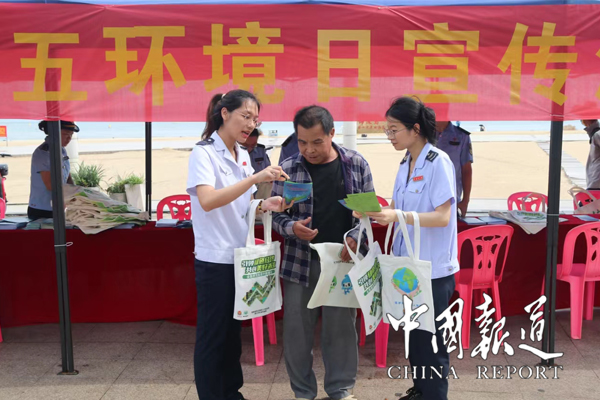 中国报道讯(陈赞亮 通讯员宋新莲 程铭心)6月5日,在第53个世界环境日当天,阳江市海陵区税务局联合阳江市生态环境局海陵分局以“全面推进美丽中国建设”为主题,在海陵岛螺洲海滨公园广场“搭台”开展宣传活动。