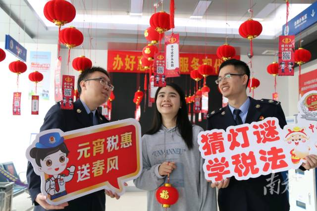 玉兔闹元宵,花灯处处红。在全国各地,猜灯谜已成为人们庆祝元宵佳节的重要习俗。近日,阳江市海陵区税务局与纳税人缴费人共同开展“元宵税惠送春风”主题税宣活动,营造欢乐祥和的节日氛围。