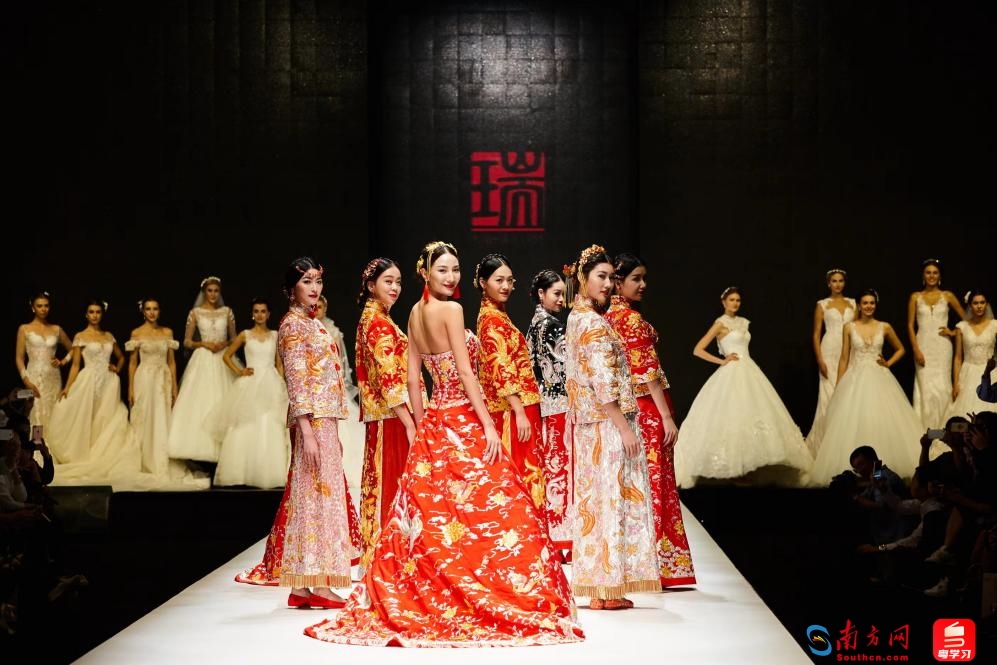 采用非遗潮绣独特技法的龙凤裙褂在潮州时装周上大放异彩