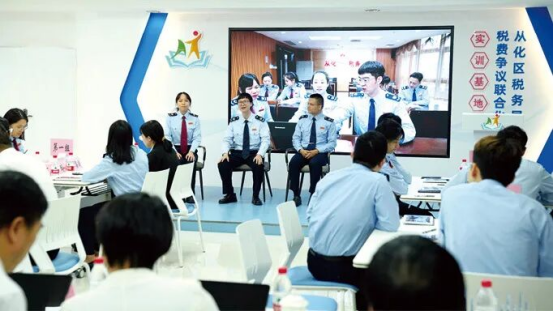 “从最初的忐忑不安到如今的从容应对、有效化解,每一次模拟演练都是能力的淬炼。”从化区税务局组织人事科科长蔡素芝感慨道。这个最初只有20人参与的小型实训基地,如今已发展成为辐射珠三角其他城市乃至外省税务部门的专业训练平台,累计开展培训18场,覆盖858人次。