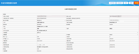 具体流程:(企业身份进入)我要办税>综合信息报告>税源信息报告>补建车购税登记信息