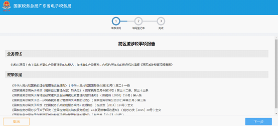 4.点击“确定”后,系统进入“填表说明”界面,填表说明界面提供了“业务概述”、“政策依据”。